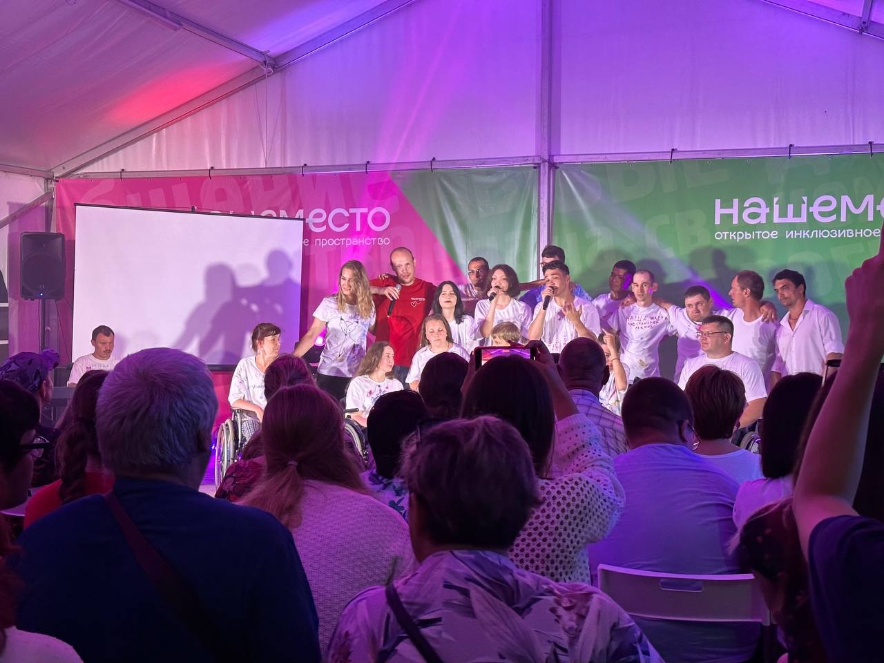 Песни, танцы, жестовое пение и даже стендап! Каждый из номеров вызывал бурю эмоций и настоящие овации у зрителей. Ведущие мероприятия ловко держали внимание гостей, а также создавали позитивную и добрую атмосферу. Когда последняя нота гимна Открытого и нклюзивного пространства «Наше место» затихла в финале концерта, гости не торопились уезжать. Очень многие с радостью знакомились с участниками, танцевали и просто проводили время в свое удовольствие!