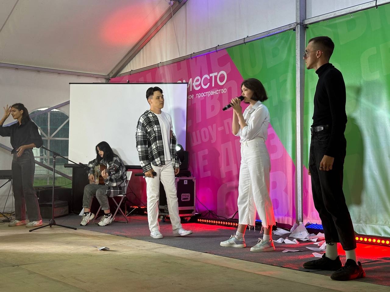А когда летний закат окрашивал небо в красно-оранжевые оттенки, в главном шатре громко играла музыка, ребята пели, танцевали и демонстрировали веселые сценки на творческих мероприятиях. Одним из них стало Шоу талантов, где каждый желающий мог проявить свои творческие способности!