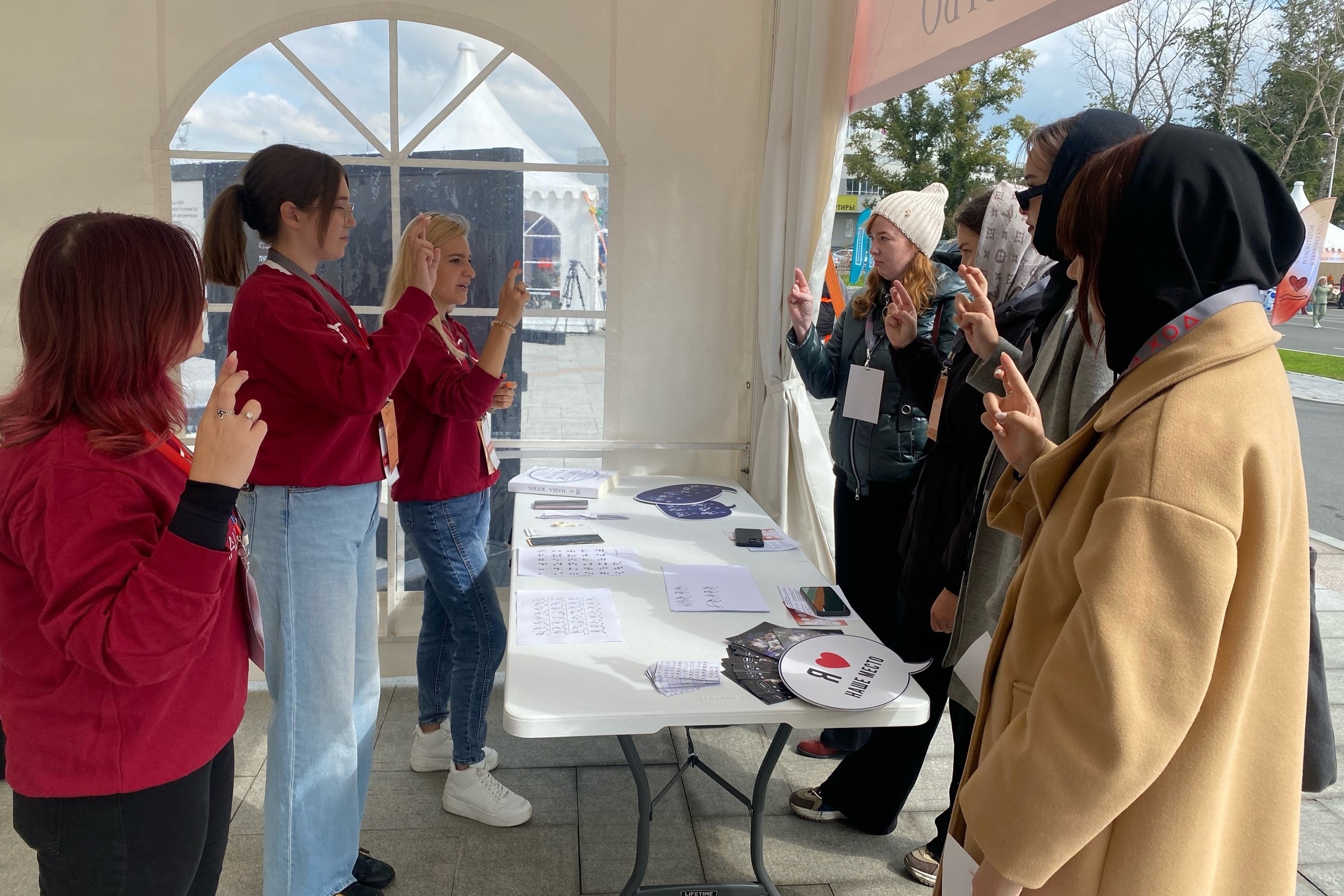 На территории арт-сквера расположилось 20 площадок с различными направлениями добровольческой деятельности. Названием нашей площадки стало «Инклюзивное волонтёрство». На ней участники фестиваля познакомились с деятельностью «Нашего места», приняли участие в мастер-классе по русскому жестовому языку, а также вместе с педагогом Василием Березковым разучили несколько танцевальных движений в стиле бачата.