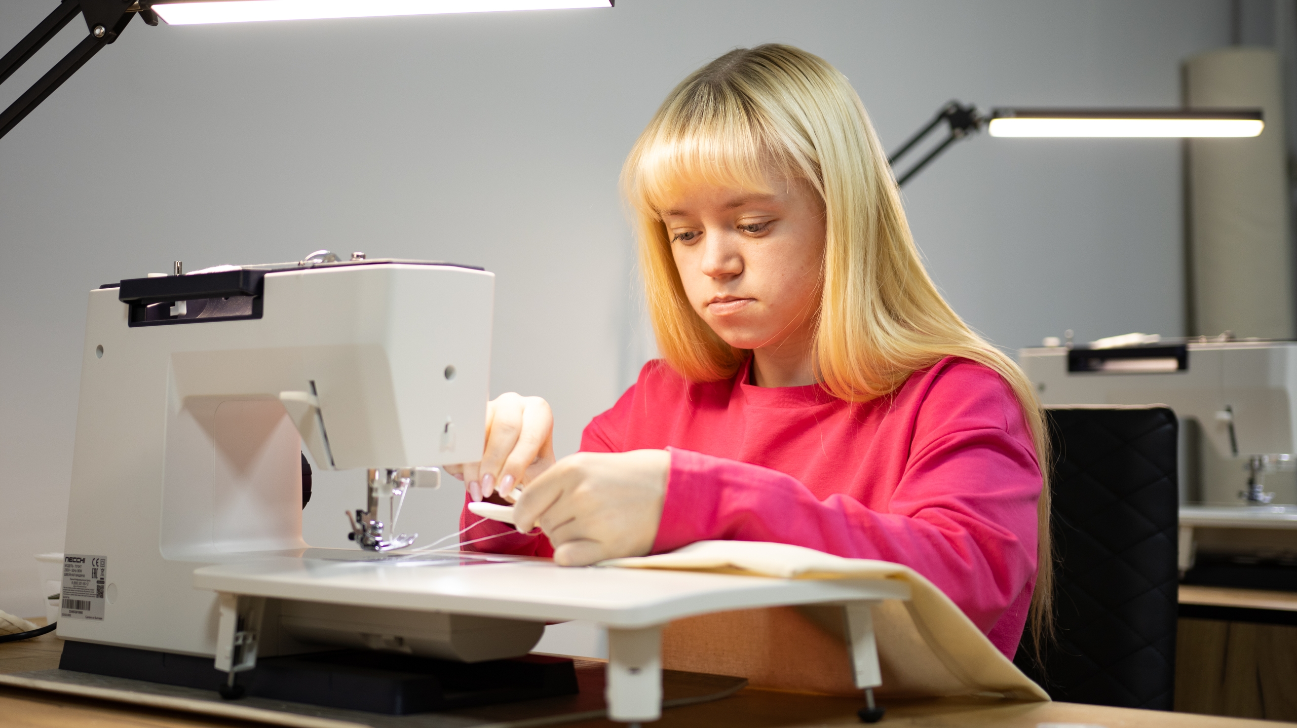 С первых занятий ребята учились держать иголку, вдевать нитку, завязывать узелок и делать аккуратные стежки. Потом пришел черед пуговиц, простых швов и первых изделий. Сейчас они уже работают на швейной машине: знают, как заправить нитки, прошить прямую линию и закрепить шов. Первый результат — игольницы на руку, подарочные мешочки и сервировочные салфетки.