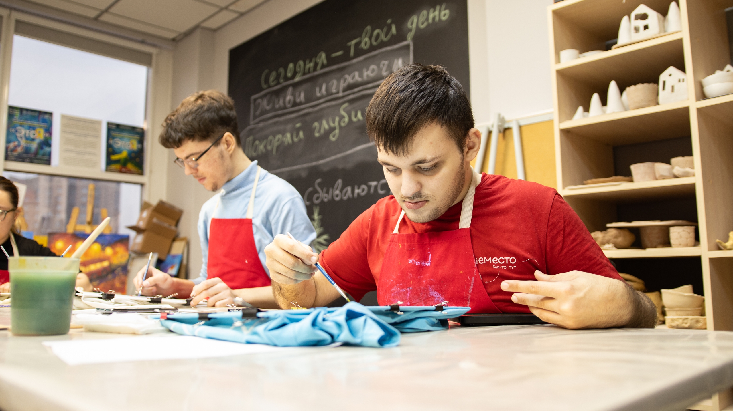 Сейчас большинство направлений проекта готовится к предстоящим ярмаркам и выставкам. Там можно будет увидеть все, что ребята сделали с сентября: керамику и текстиль, цветочные композиции и открытки.