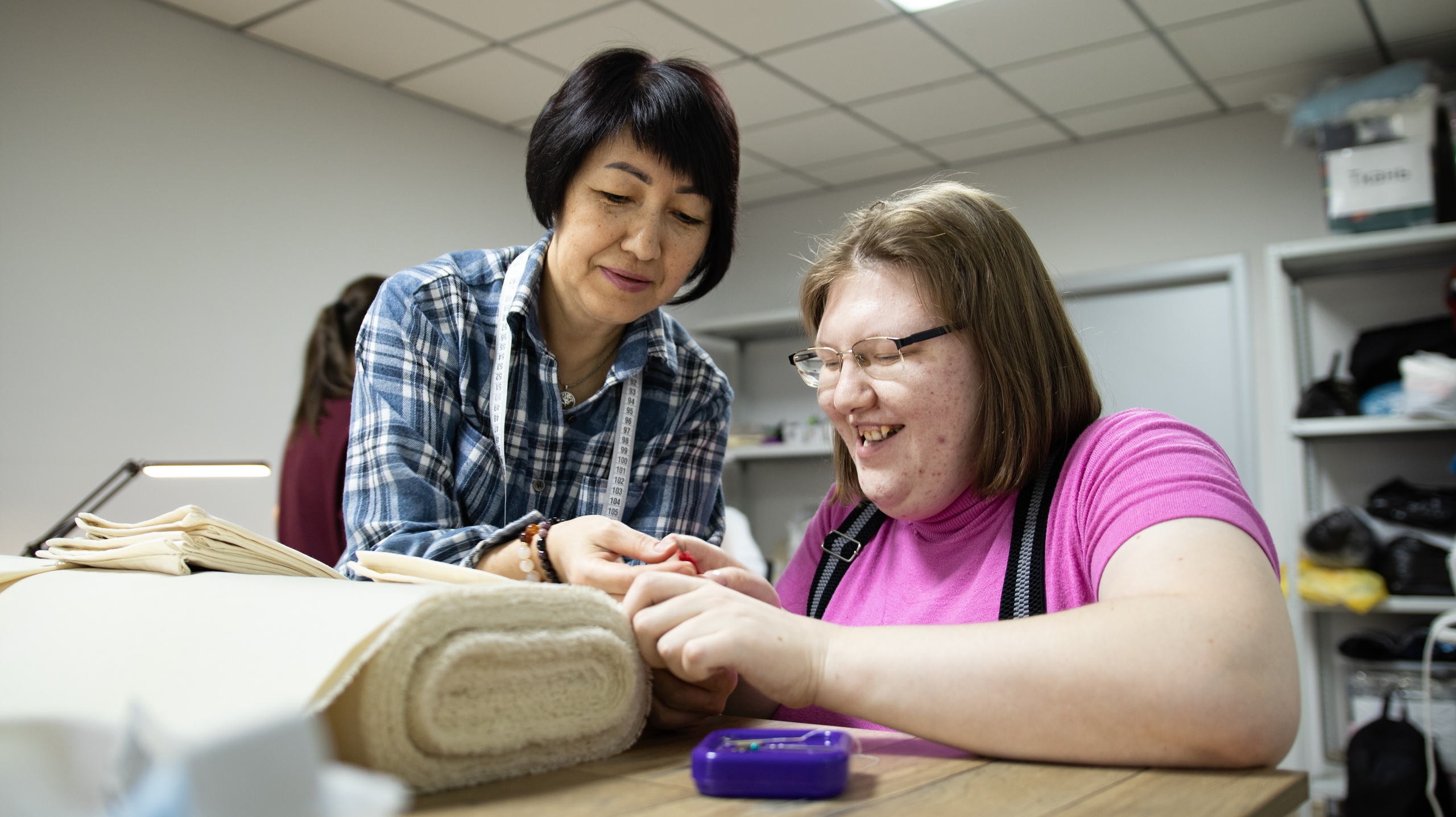 «Мне безумно нравится! Было приятно видеть результат — готовые салфетки и мешочки. Преподаватели все объясняют спокойно и терпеливо», — делится Ольга Логинова, участница мастерской.