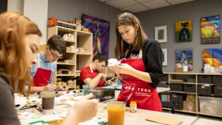 На встречах участники украшают значки, рисуют открытки и пишут картины. Ребята экспериментируют с цветом и материалами, ищут свой стиль и выражают настроение в деталях.