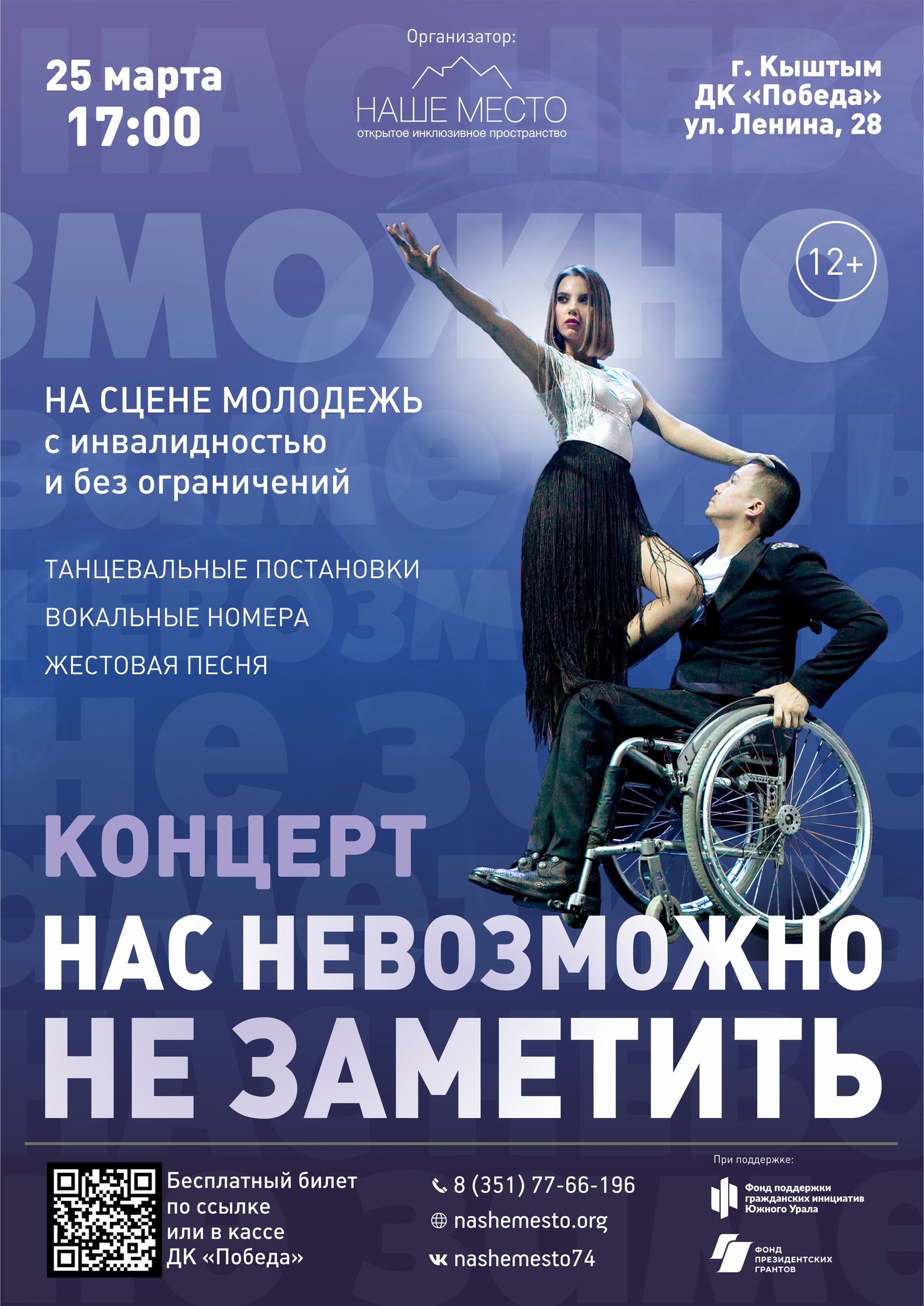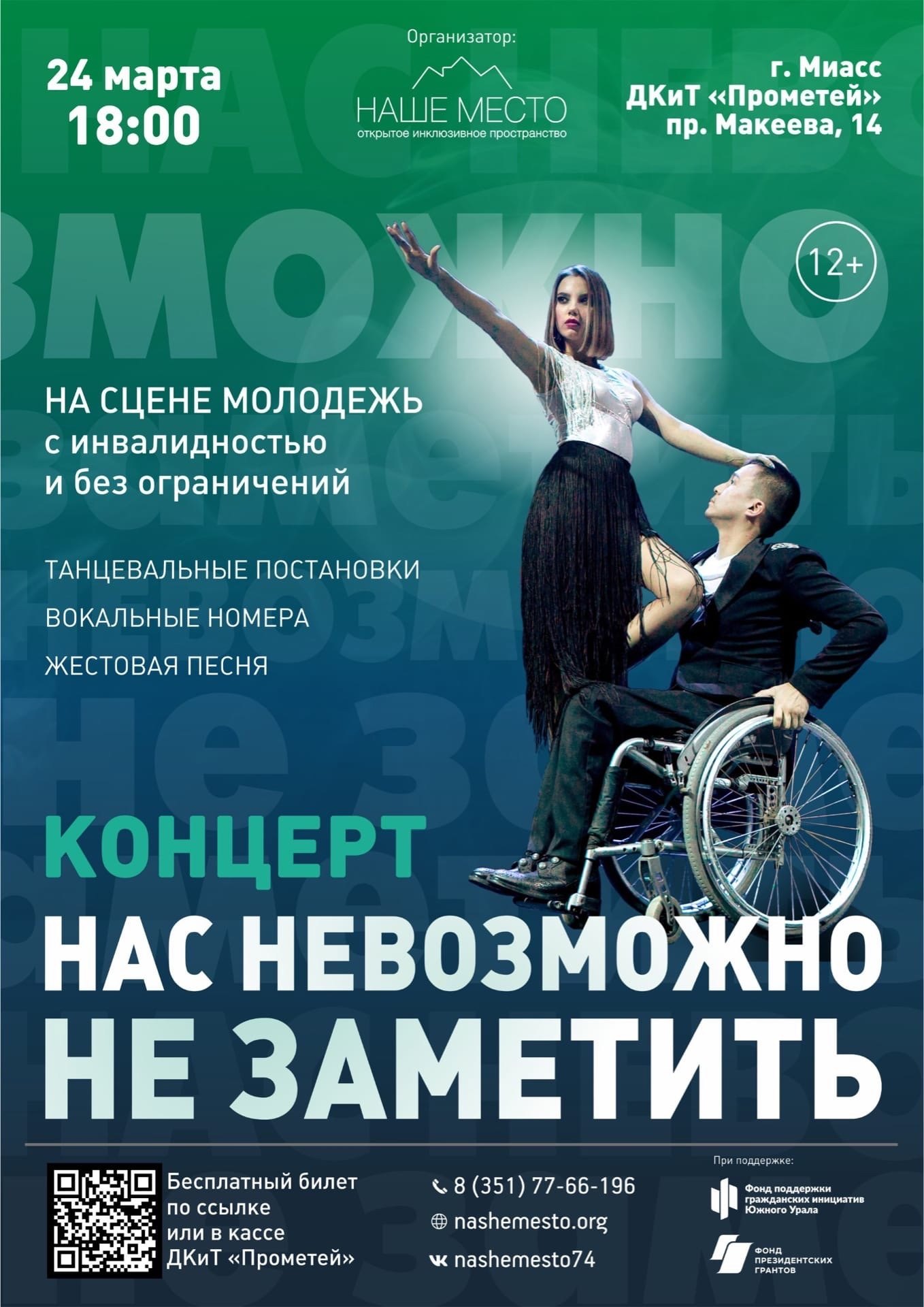 Проект Открытое инклюзивное пространство «Наше место» реализуется с использованием гранта Губернатора Челябинской области, предоставленного «Фондом поддержки гражданских инициатив Южного Урала» и гранта Президента Российской Федерации на развитие гражданского общества, предоставленного Фондом президентских грантов.